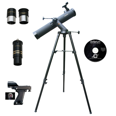 The C-80080TR optical tube assembly features an 800mm focal length. The primary mirror is 80mm in diameter and in mounted in a heavy duty mirror cell with push / pull collimation screws. The finder is Cassini's Mars-Eye Electronic Finder which helps by getting the observer behind the telescope without losing the surrounding field of view when targeting objects. Included with the C-80080TR are a 1¼" 10mm Plössl eyepiece, a 1¼" 25mm Astroscopic Eyepiece, and a 2 element 3x Astroscopic Barlow. Lastly, the Cassini Stellarium CD ROM brings skies over your home or anywhere in the world.