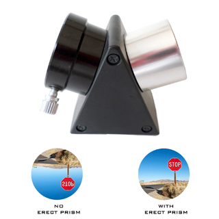 The Cassini Erecting Prism Diagonal increases the viewing comfort and usability of refractor telescopes. True astronomical telescopes will produce an upside down image and with the Cassini Erecting Prism Diagonal the image in your telescope will turn right side up. No erecting lenses, mirrors, or prisms are added and having these elements in the telescope can cause images to be dim and or distorted making terrestrial viewing (land viewing) difficult. The Cassini Erecting Prism Diagonal will turn the image in your telescope right side up to enable easy, comfortable terrestrial viewing. Cassini Prism diagonals consist of a 45-degree prism and are available in 1.25-inch format.